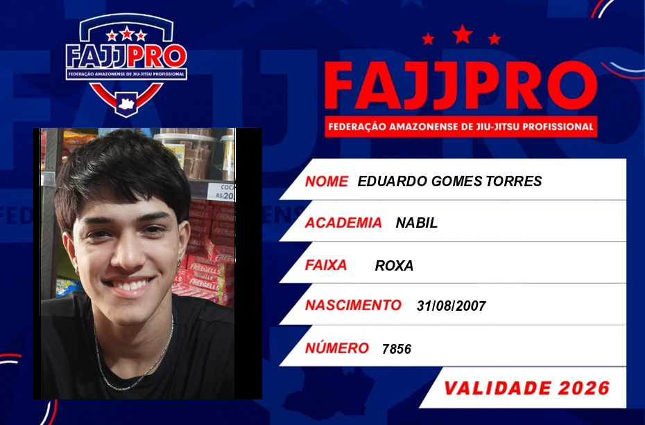 | 01/02/2026 | P2584-TACA AMAZONAS DE JIU-JITSU PRO 2026 - EDICAO | BRASIL | MANAUS - AM | 2º | MASCULINO/ADULTO/ROXA/PENA | |