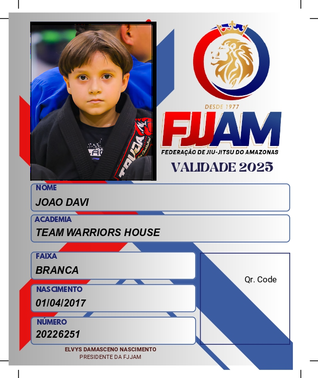 | 05/07/2025 | P2387-XXXVIII COPA OSVALDO ALVES DE JIU-JITSU GI E NOGI - FJJAM 2025 - EDICAO | BRASIL | MANAUS - AM | 1º | MASCULINO/MIRIM 2/BRANCA/MEDIO |