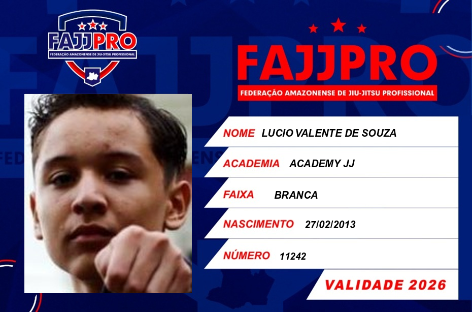 | 21/02/2026 | P2587-AMAZON OPEN GI E NOGI DE JIU JITSU ESPORTIVO FAJJE 2026 - EDICAO | BRASIL | MANAUS - AM | 1º | MASCULINO/INF-JUV A/BRANCA/MEIO-PESADO |