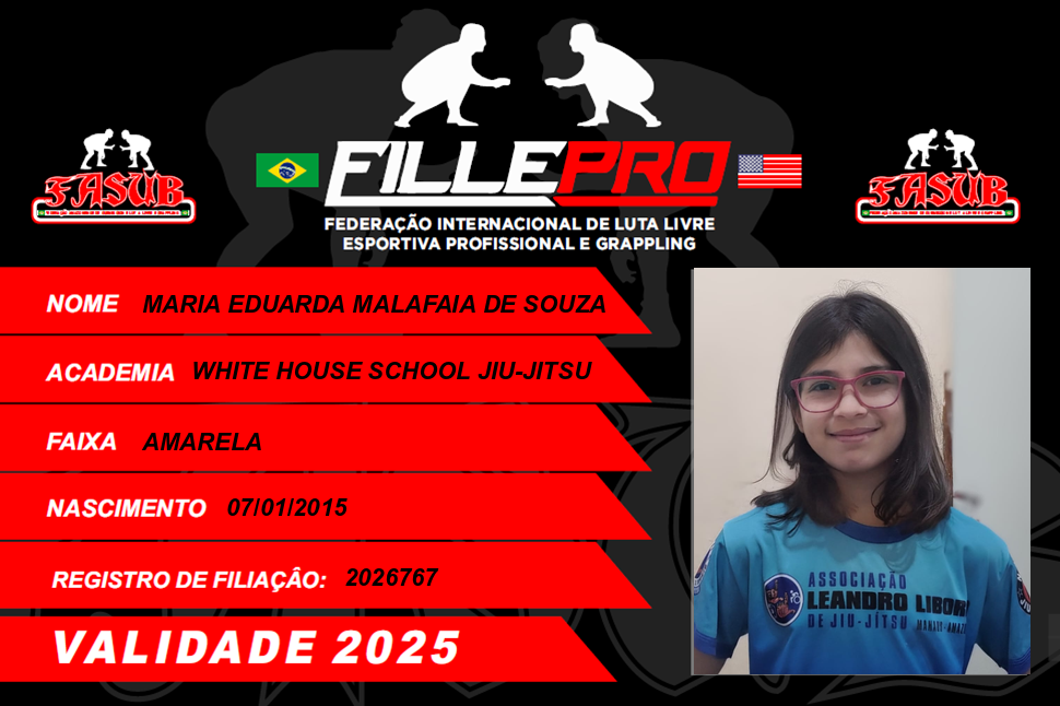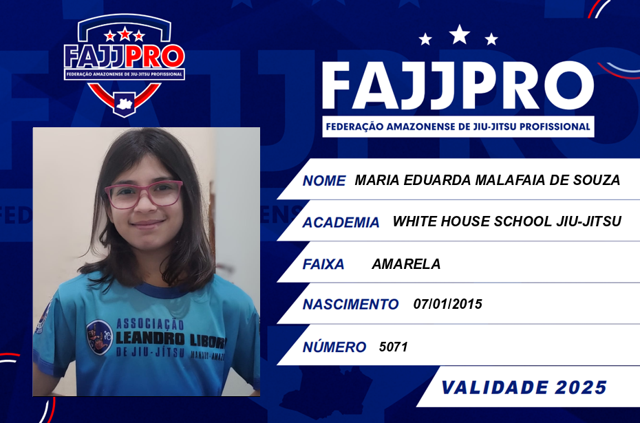 22/02/2025 | P2246-XII TACA AMAZONAS BJJ PRO 2025 - EDICAO | BRASIL | MANAUS - AM | 1º | FEMININO/INFANTIL B/BRANCA+CINZA/PENA | |