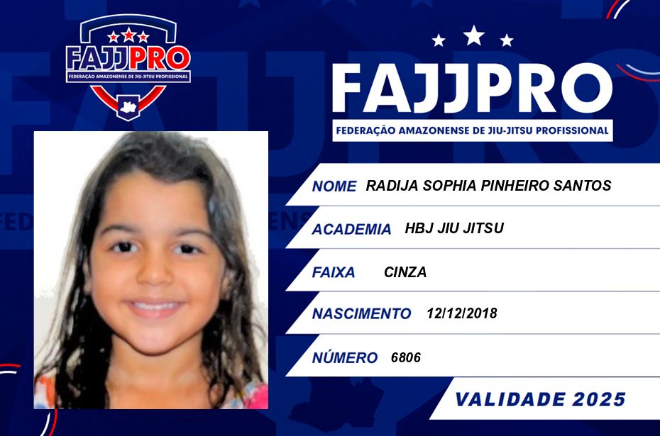 | 15/06/2025 | P2353-BJJ CUP PRO 2025 - EDICAO | BRASIL | MANAUS - AM | 1º | FEMININO/MIRIM NOGI/CINZA/ATE 28KG | |
