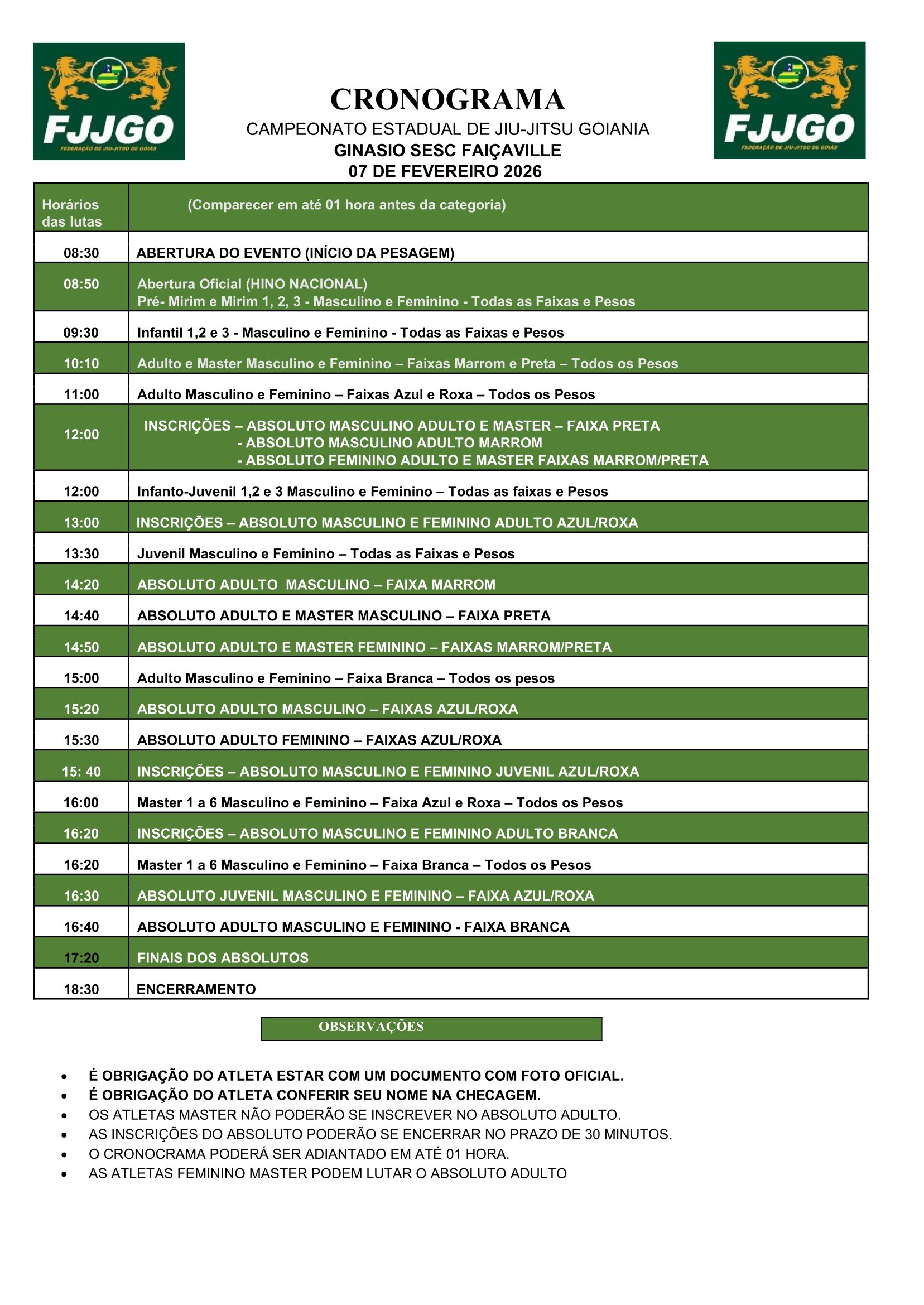A Federação de Jiu-Jitsu de Goiás tem a honra de convidar todas as Equipes do Brasil a participarem do CAMPEONATO ESTADUAL DE JIU-JITSU #1 edição 2026.