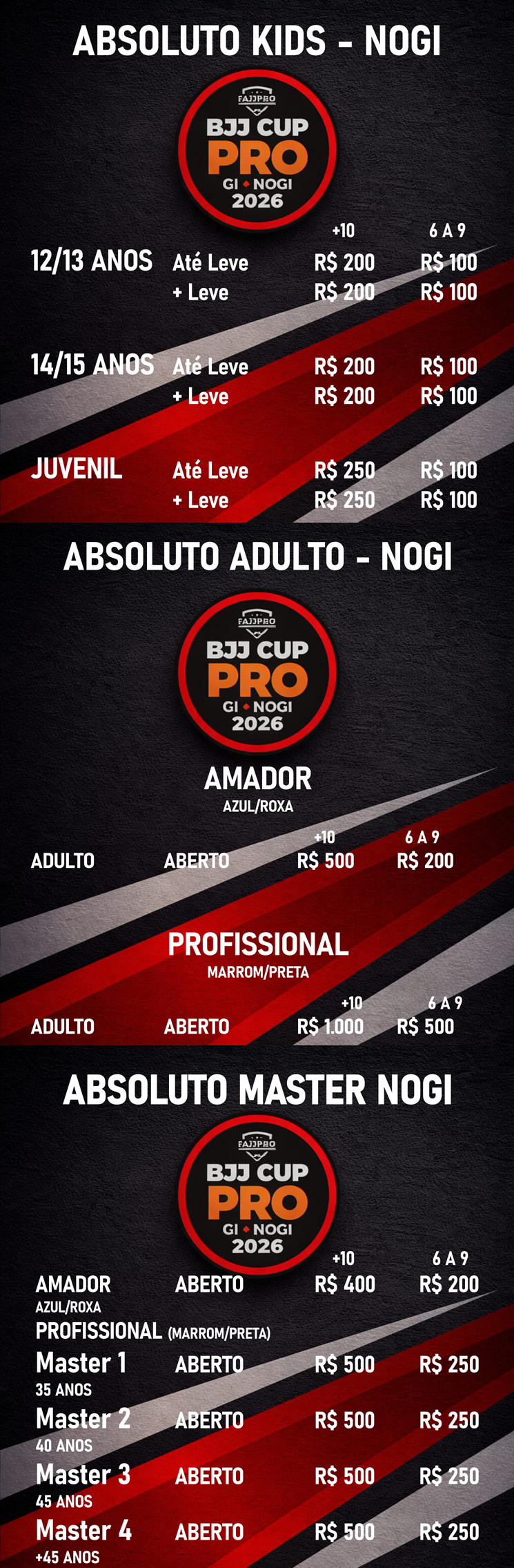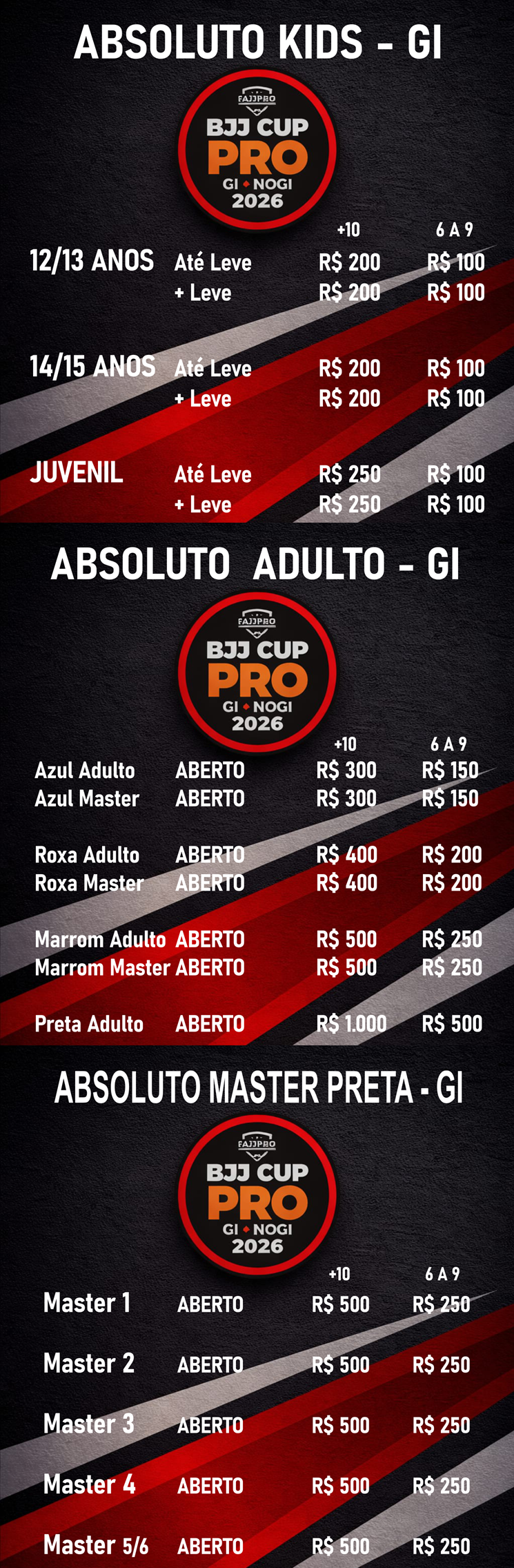 Somente os atletas filiados na FAJJPRO 2026 poderão se inscrever neste evento.