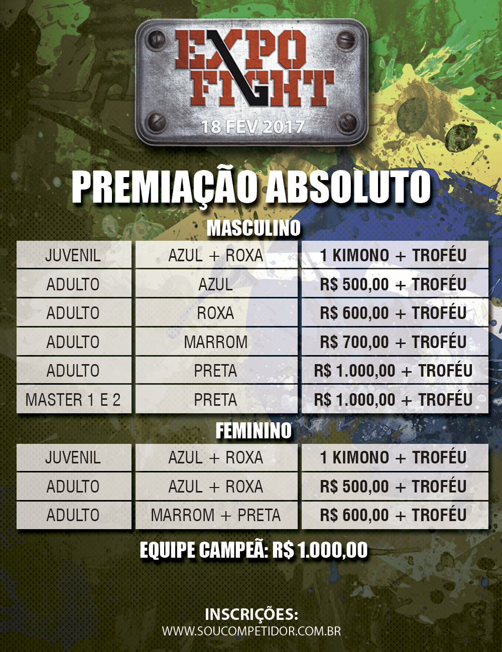 DISPUTA DE CINTURÃO + PREMIAÇÃO EM DINHEIRO
