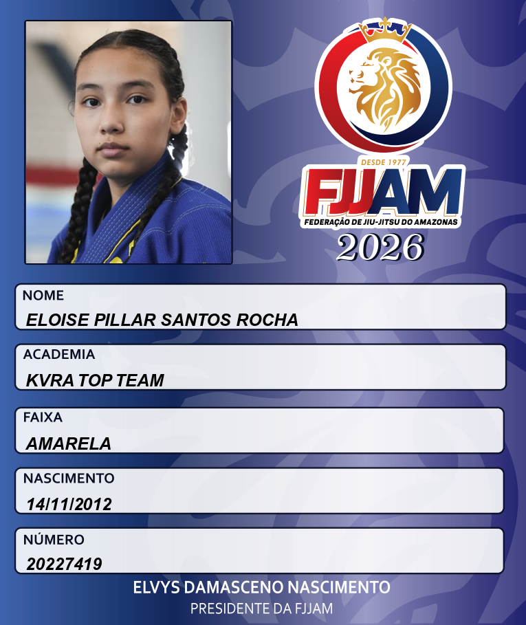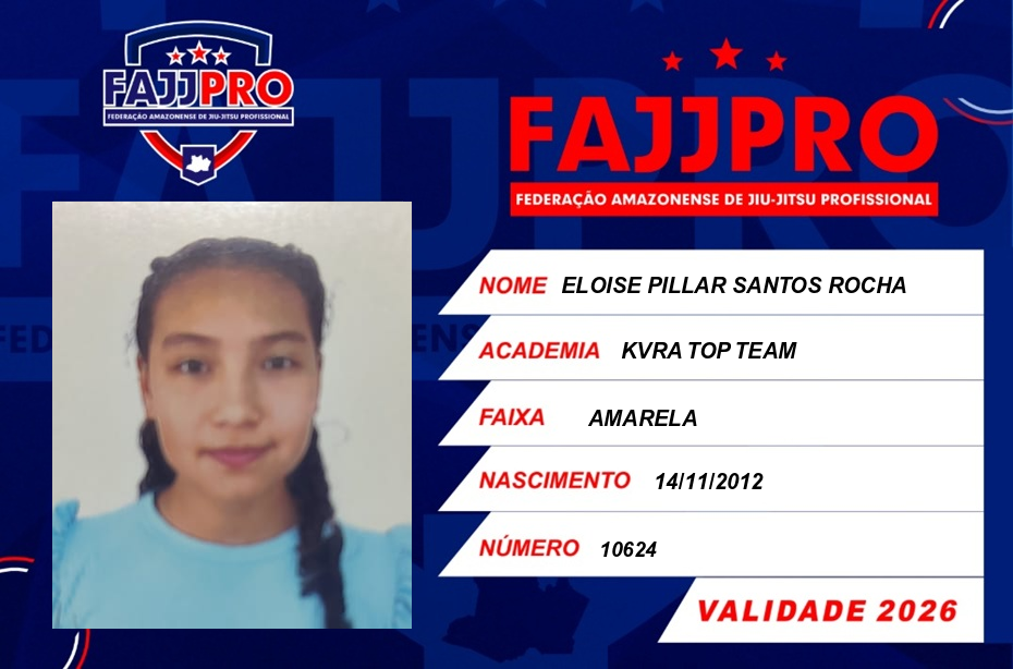 | 14/03/2026 | P2623-CAMPEONATO AMAZONENSE DE JIU-JITSU PRO 2026 - EDICAO | BRASIL | MANAUS - AM | 2º | FEMININO/INF-JUV B/AMARELA+LARANJA+VERDE/MEIO-PESADO |