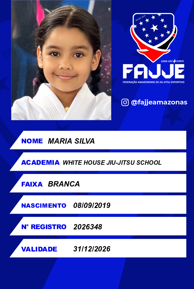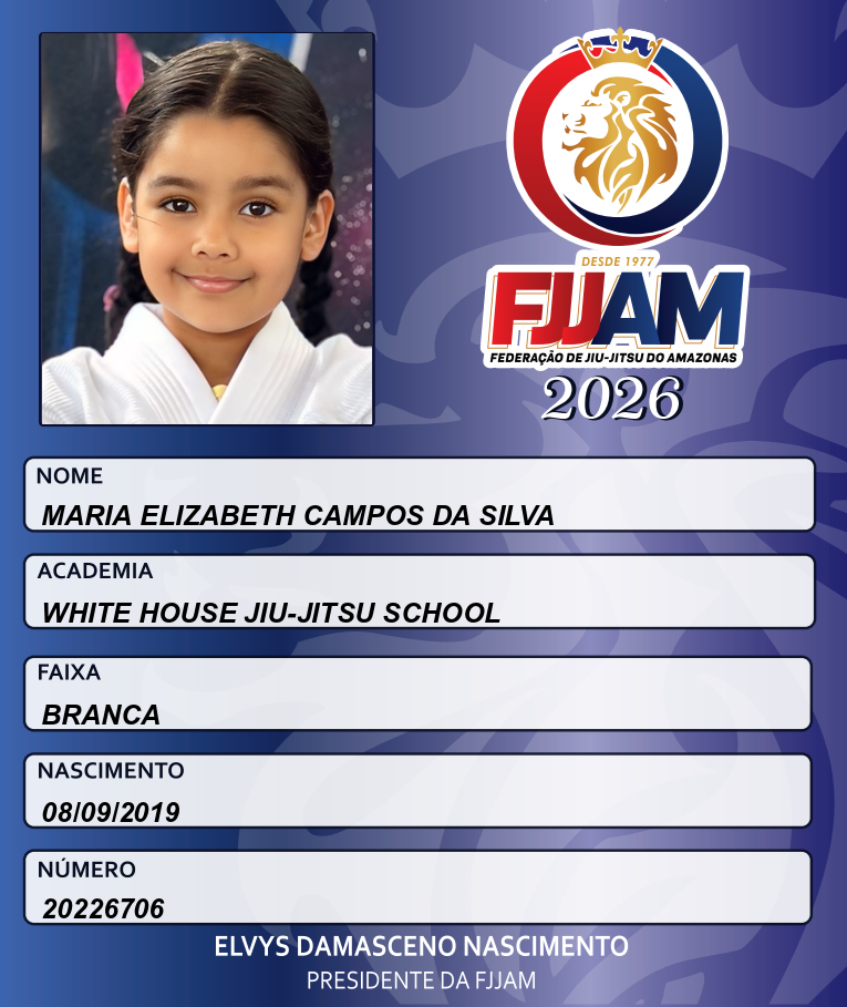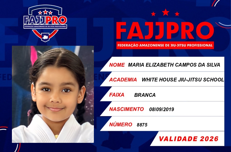 | 14/03/2026 | P2623-CAMPEONATO AMAZONENSE DE JIU-JITSU PRO 2026 - EDICAO | BRASIL | MANAUS - AM | 1º | FEMININO/MIRIM/BRANCA/LEVE |