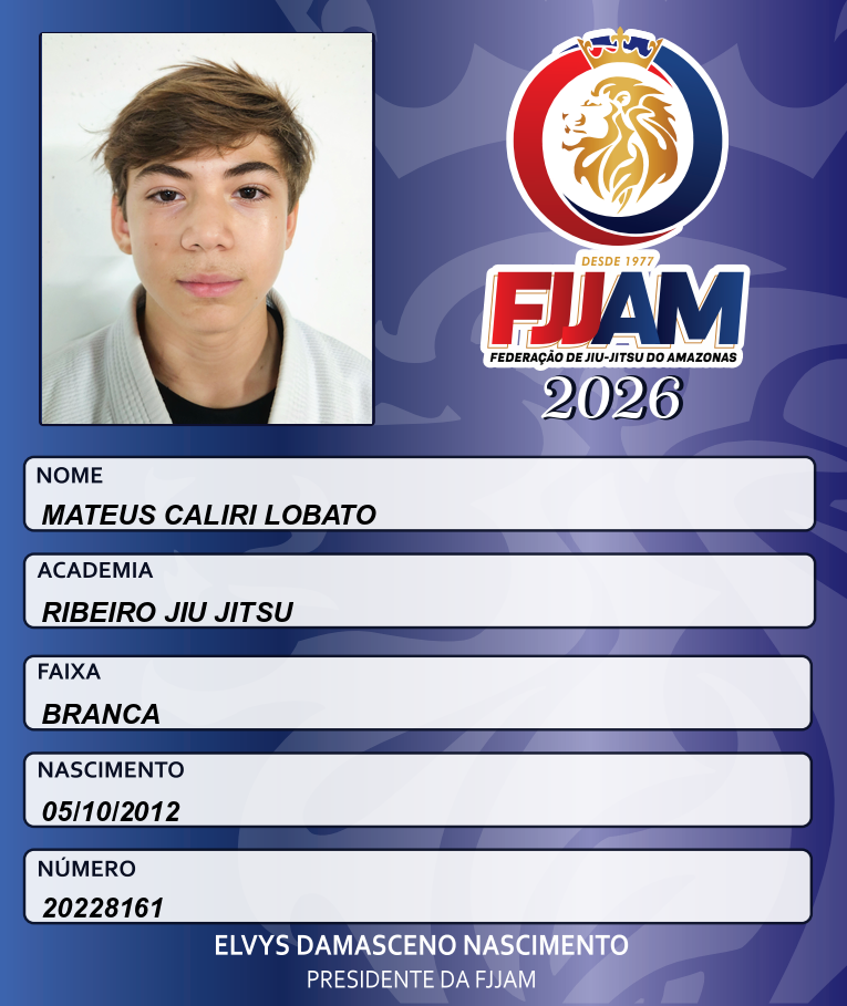 | 21/02/2026 | P2587-AMAZON OPEN GI E NOGI DE JIU JITSU ESPORTIVO FAJJE 2026 - EDICAO | BRASIL | MANAUS - AM | 2º | MASCULINO/INF-JUV B/BRANCA/MEDIO |