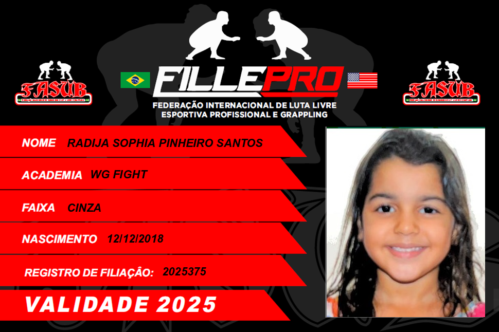 | 15/06/2025 | P2353-BJJ CUP PRO 2025 - EDICAO | BRASIL | MANAUS - AM | 1º | FEMININO/MIRIM NOGI/CINZA/ATE 28KG | |