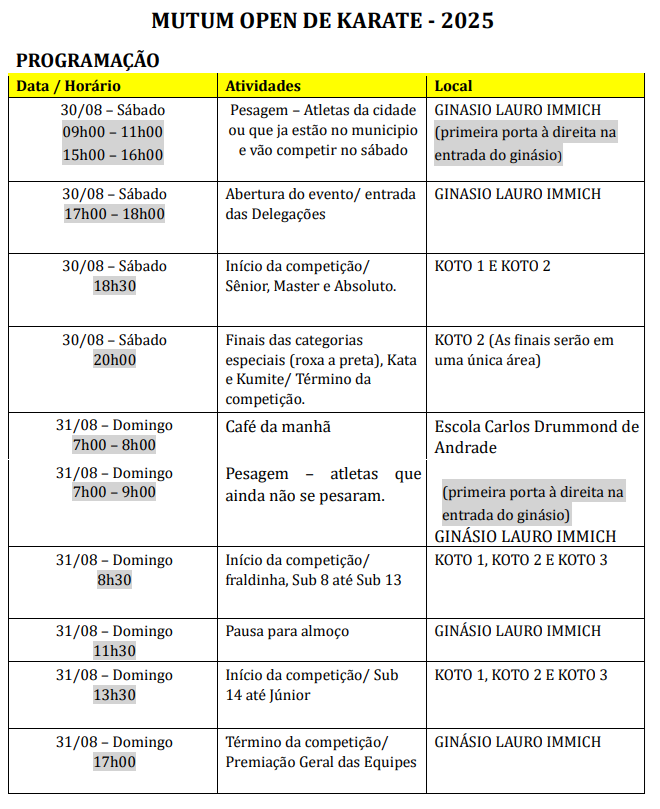 Todos os praticantes de KARATÊ podem competir, sem ser necessário filiação.