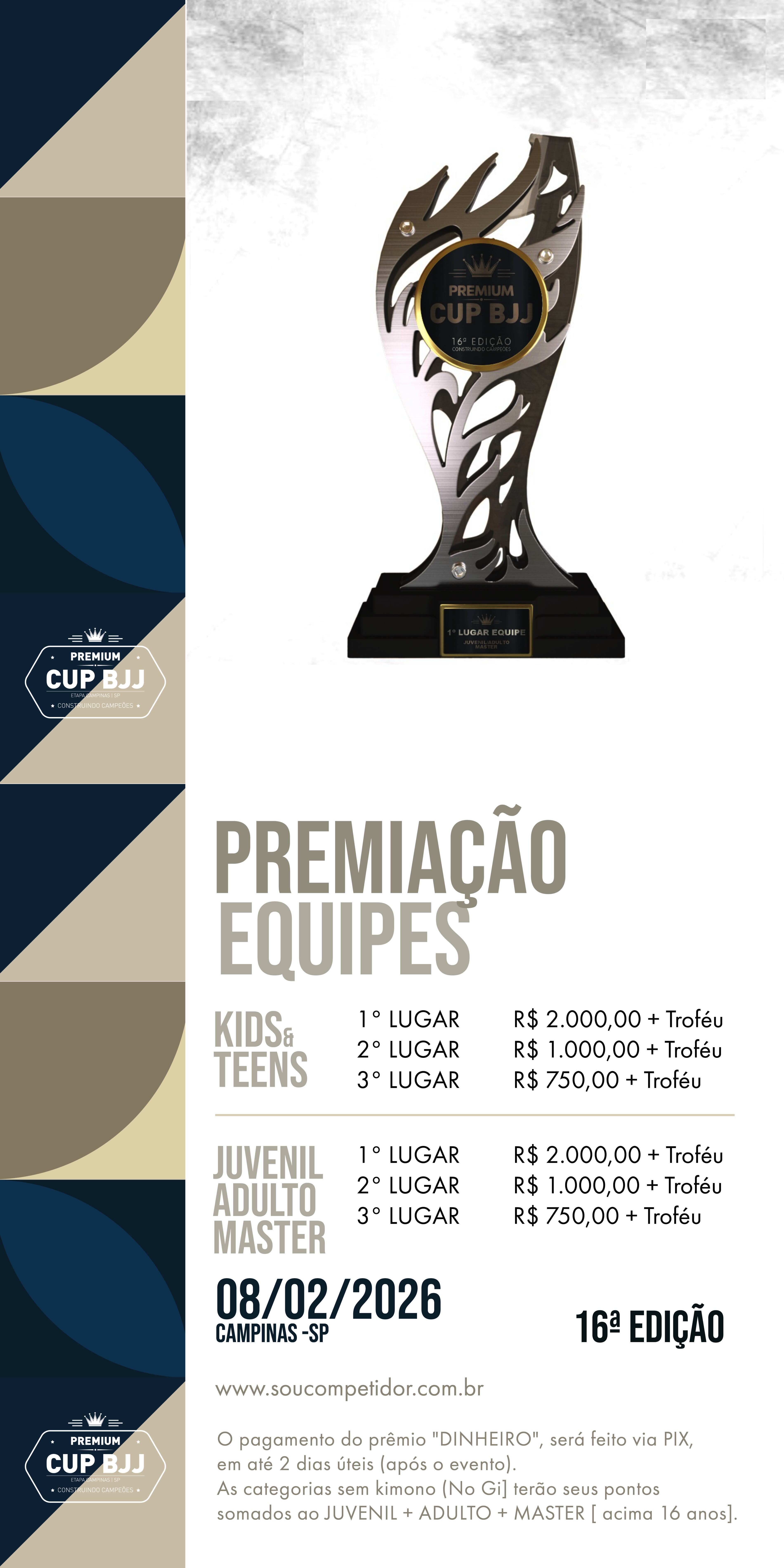 PREMIAÇÃO => Informações e regras sobre a premiação em dinheiro das categorias e equipes, quando houver.