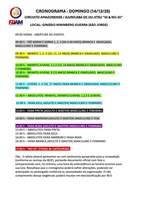Para competir este evento, o atleta deverá estar filiado em 2025 na FJJAM.