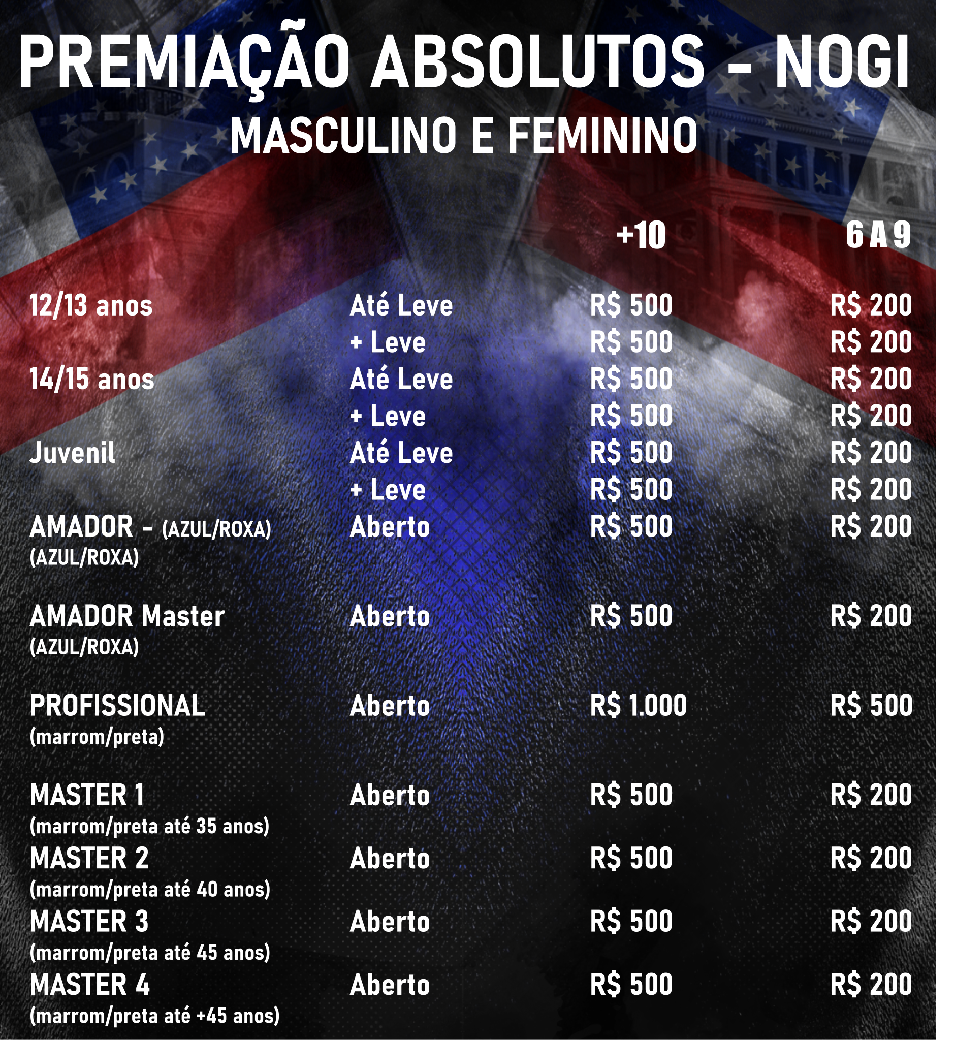 #PREMIAÇÃO NOGI - SEM KIMONO - ABSOLUTOS